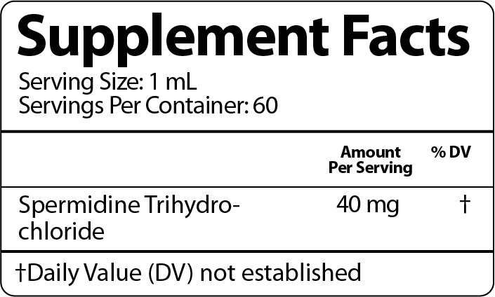 Formulated with Spermidine Trihydrochloride as the single active ingredient – no proprietary blend.